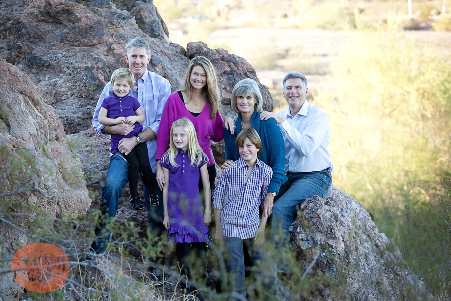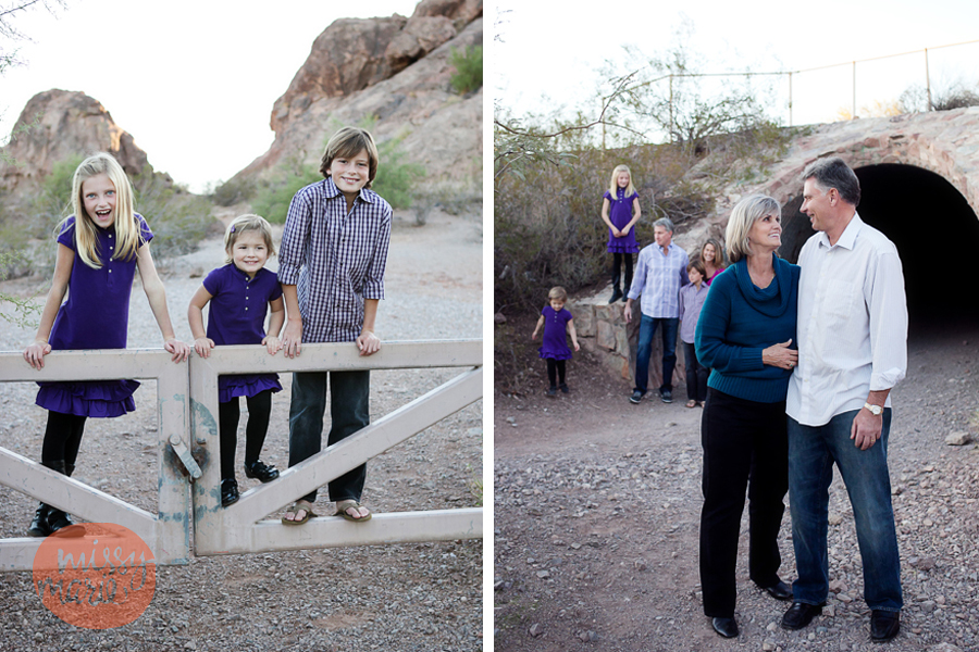 Sometimes things just work out.  I know, sometimes they don’t, but I am an optimist, and I like to say that things DO work out.  We had an uncanny amount of rain this past fall that fell, strangely, just on the weekends.  Quite a few of my sessions had to be rescheduled, or planned differently.  This family was planning on traveling to visit the grandparents in AZ during Thanksgiving week, and funny enough, so was my own family.  So, we decided to reschedule her “rained out” session in AZ.  What luck to both be there at the same time, and then to also include her parents.  We met a Papago Park in Tempe…I loved the variety of spots to shoot, as my regular session backdrop is either the beach or small wooded spaces.  Enjoy!