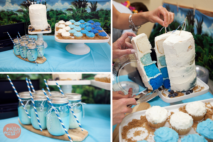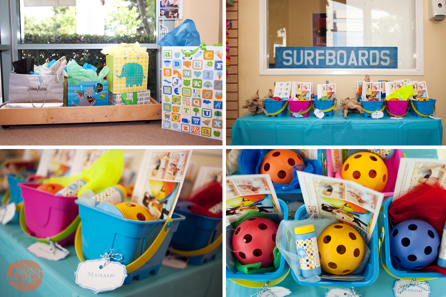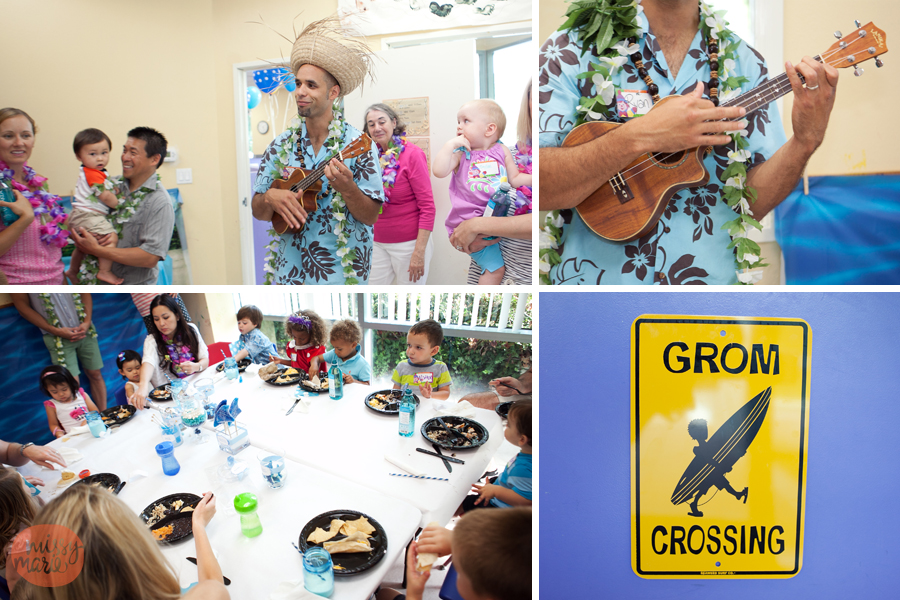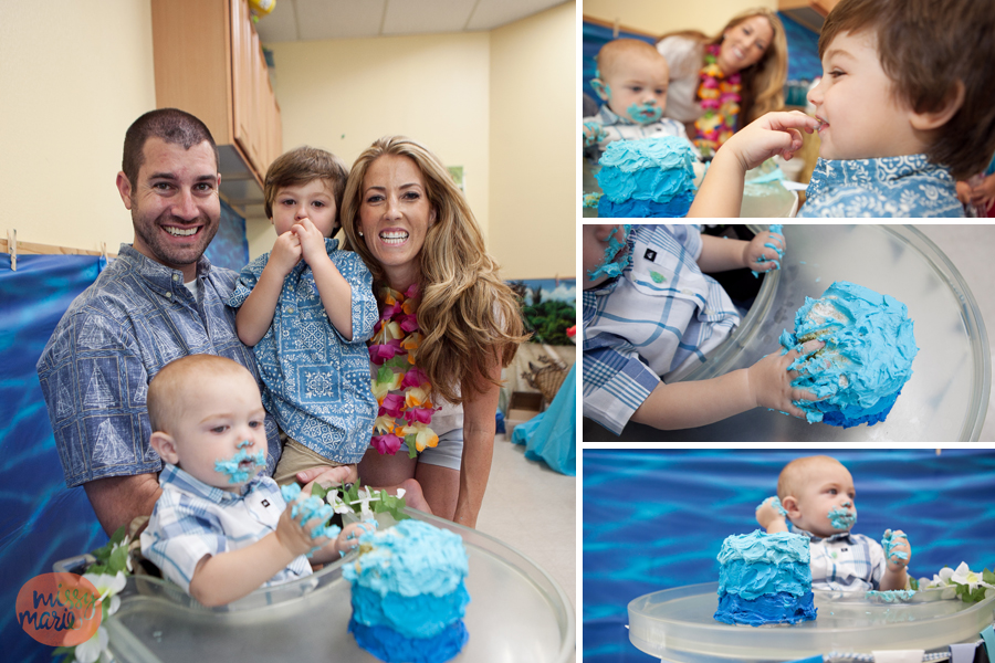 This 1 year old birthday party was amazing…the momma outdid herself. The Hawaiian surf themed party was at Gymboree Play & Music which was decorated beautifully with Hawaiian leis, “blue water” wall coverings, and turtle baskets. She had a lovely spread of beautiful hand-made, blue-ombre cupcakes and a 4 layer cake. The blue and white candy bar was a total hit with the kiddos. I loved capturing all of these details ~ she really did think of everything!